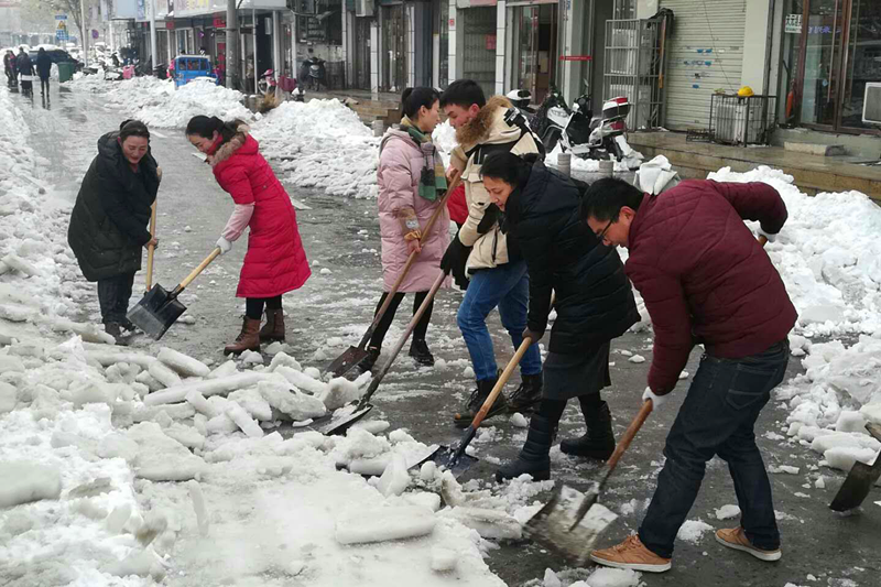 下午,黨支部書記劉佳帶領(lǐng)全體黨員從老干部局東大門向北開始,沿著潁州路泉河橋到河濱路進(jìn)行義務(wù)除雪活動,寒風(fēng)中大家掃雪熱情高漲,揮汗奮戰(zhàn),整個掃雪場面熱火朝天,忙碌的身影成了雪中的一道靚麗風(fēng)景線。經(jīng)過近三個小時的努力,在積雪中清掃出一條長100多米的便民道路,為市民和車輛的出行營造了安全的環(huán)境,獲得了過往群眾的拍手稱贊。