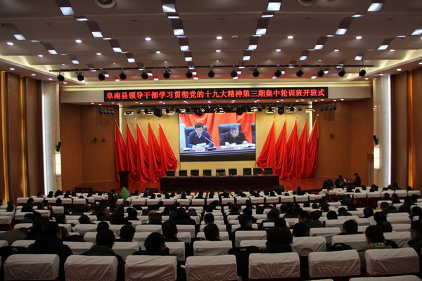 最后,學員們觀看了縣委書記崔黎的動員講話錄像。希望學員們通過此次輪訓班可以貫徹落實好十九大精神,在習近平習近平新時代中國特色社會主義思想的引領下,把阜南人民的事情辦好。