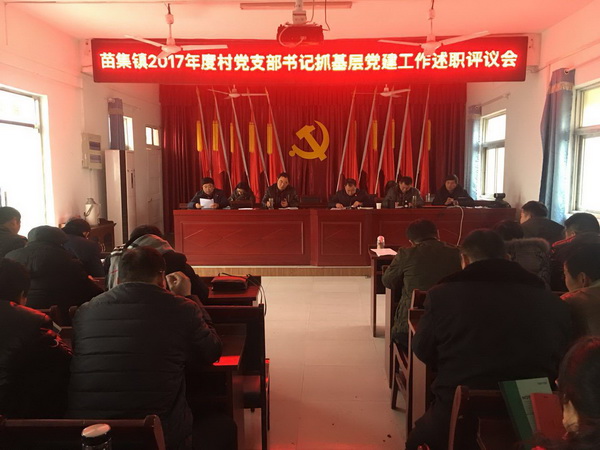 為深入學(xué)習(xí)貫徹習(xí)近平習(xí)近平新時代中國特色社會主義思想和黨的十九大精神,認(rèn)真落實新時代黨的建設(shè)總要求,進(jìn)一步推動全面從嚴(yán)治黨向基層延伸,促進(jìn)基層組織建設(shè)全面進(jìn)步、全面過硬。1月22日下午,苗集鎮(zhèn)組織召開2017年度村黨支部書記抓基層黨建工作述職評議會。會議由鎮(zhèn)黨委書記于旬主持,鎮(zhèn)村全體干部和部分群眾代表參加了會議。