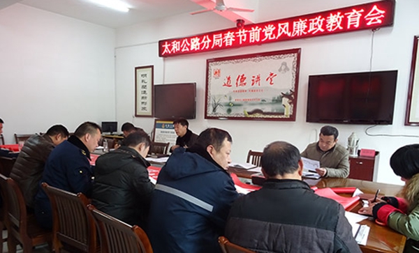 春節(jié)臨近,2月8日下午,太和公路分局召開黨風(fēng)廉政教育專題會(huì)議,專題研究安排春節(jié)期間黨風(fēng)廉政工作。局領(lǐng)導(dǎo)班子、機(jī)關(guān)全體人員、中心道班班長(zhǎng)、路泰公司負(fù)責(zé)人參加會(huì)議。