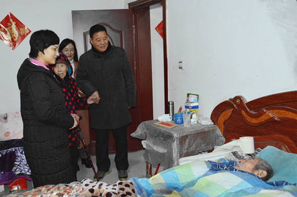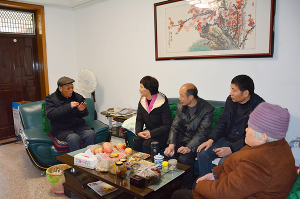 在循環(huán)園區(qū),桂麗、劉繼平先后走訪看望了特困黨員潘付海、申明才、毛永亮等。每到一處,桂麗都親切問候這些老黨員們的身體狀況,了解他們的家庭情況,并送上慰問品及慰問金,代表組織向他們表達新春祝福,祝愿他們新春快樂,健康長壽。潘付海老人一門出了七位黨員,自己也在社區(qū)工作服務多年,如今因為年齡大,已經臥床不起,桂麗拉著他的手,噓寒問暖,滿懷深情地向他為社區(qū)為基層做出的貢獻表示感謝。桂麗叮囑隨行人員,要多關心、關注老黨員們的生活狀況,及時解決他們的生活困難,讓他們可以安享晚年。