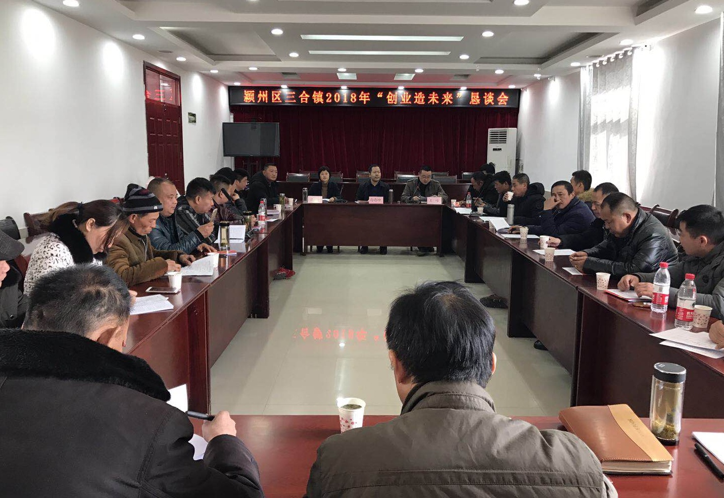 2月13日上午,潁州區(qū)三合鎮(zhèn)召開(kāi)2018年“創(chuàng)業(yè)造未來(lái)”懇談會(huì),三合籍返鄉(xiāng)人員代表、創(chuàng)業(yè)精英代表和在外創(chuàng)業(yè)企業(yè)家代表、鎮(zhèn)黨政領(lǐng)導(dǎo)班子成員、各部門單位負(fù)責(zé)人、各村居書(shū)記共40余人參加會(huì)議。鎮(zhèn)黨委副書(shū)記王峰主持會(huì)議,鎮(zhèn)黨委書(shū)記梁峰致辭,區(qū)委常委、常務(wù)副區(qū)長(zhǎng)孫存坤出席會(huì)議并作了重要講話。