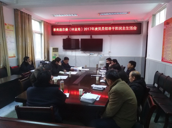 2月13日下午,阜南縣農(nóng)委(林業(yè)局)召開2017年度黨員領(lǐng)導干部民主生活會??h委組織部組織室主任邵建秋、縣紀委第十集中派駐組謝連軍同志到會指導??h農(nóng)委(林業(yè)局)領(lǐng)導班子全體成員參加會議??h農(nóng)委機關(guān)黨委副書記劉嘉列席會議??h農(nóng)委黨組書記、主任(局長)張志宇主持民主生活會。