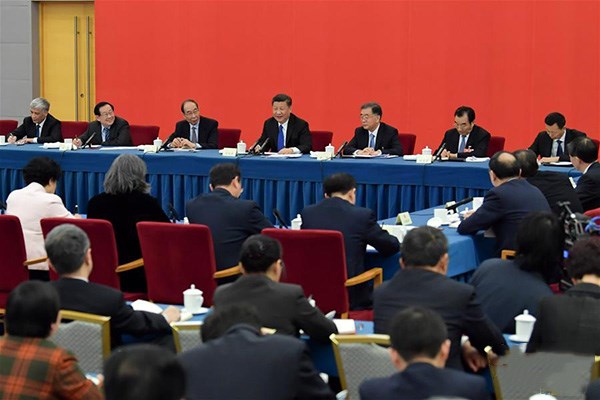 3月4日下午,中共中央總書記、國家主席、中央軍委主席習(xí)近平看望參加全國政協(xié)十三屆一次會議的民盟、致公黨、無黨派人士、僑聯(lián)界委員,并參加聯(lián)組會,聽取意見和建議。中共中央政治局常委、全國政協(xié)十三屆一次會議主席團會議主持人汪洋參加看望和討論。