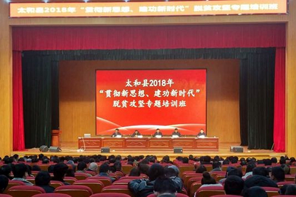 3月3日、4日,太和縣利用兩天時間召開“貫徹新思想、建功新時代”脫貧攻堅專題培訓(xùn)會,縣委常委、副縣長海治國出席開班儀式并作動員講話,縣扶貧辦主任劉飛主持會議??h鄉(xiāng)村三級扶貧干部和駐村工作隊全體成員共1180人參加培訓(xùn)。