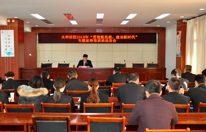 為進一步統(tǒng)一思想認識,提高廣大干警政治素質(zhì)和業(yè)務能力,按照縣委關(guān)于舉辦“貫徹新思想,建功新時代”延伸培訓班通知安排,3月12日,太和縣人民法院組織開展“貫徹新思想 建功新時代”專題延伸培訓。院黨組副書記、副院長韓效軍作開班動員講話。