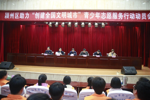 會(huì)議宣讀了《潁州區(qū)助力“創(chuàng)建全國文明城市”青少年志愿服務(wù)行動(dòng)實(shí)施方案和《團(tuán)聚青春力量 共創(chuàng)文明潁州——致廣大青少年朋友的一封信》,與會(huì)領(lǐng)導(dǎo)為青年志愿者、紅領(lǐng)巾服務(wù)隊(duì)代表授旗,并為潁州區(qū)環(huán)衛(wèi)工人愛心驛站授牌。青年志愿者、紅領(lǐng)巾志愿者代表進(jìn)行了領(lǐng)誓。相關(guān)單位學(xué)校和社區(qū)簽訂了志愿服務(wù)結(jié)對(duì)共建協(xié)議書。