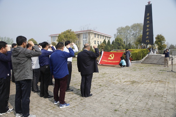 在革命烈士紀(jì)念碑前,全體黨員敬獻(xiàn)了花籃,李云川同志以一名普通黨員身份代表機(jī)關(guān)全體黨員整理花籃綬帶,縣民政局有關(guān)同志介紹了烈士陵園概況和烈士的事跡。在紀(jì)念碑前,全體黨員面向黨旗重溫入黨誓詞,隨后,全體黨員懷著崇敬的心情向革命烈士默哀,近距離瞻仰烈士墓,詳細(xì)了解烈士們的感人事跡。