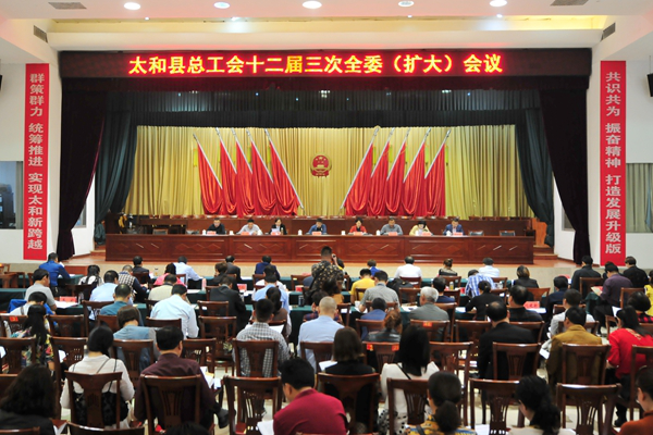 4月3日,太和縣總工會召開十二屆三次全委(擴大)會議,回顧總結2017年工作,安排部署2018年工作任務??h委副書記、縣政法委書記潘江徽出席會議并講話,縣委常委、縣總工會主席鮑黎主持會議,縣總工會黨組書記、副主席劉靜參加會議。