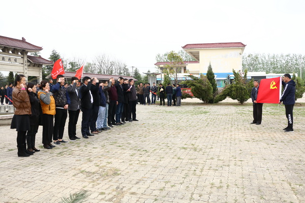 在烈士紀念碑前,參加活動的黨員們向烈士們敬獻了花籃,并以深深鞠躬方式,表達了對革命烈士們崇高的敬意和最深切的緬懷;面向黨旗,黨員們重溫了入黨誓詞,表達了牢記入黨初心,以勤奮努力工作的實際行動告慰先烈英靈的決心,和在黨言黨、在黨愛黨、在黨護黨、在黨為黨的錚錚誓言。