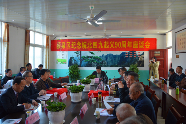 4月8日上午,由潁泉區(qū)委、區(qū)政府主辦,區(qū)文廣新體局、區(qū)委黨史研究室和行流鎮(zhèn)人民政府承辦的紀念皖北“四?九”起義90周年座談會在行流鎮(zhèn)隆重舉行。市新四軍歷史研究會老同志代表、市委黨史研究室、市政協(xié)文史委、市文物管理局、潁泉區(qū)有關(guān)領(lǐng)導(dǎo)以及“四?九”烈士親屬代表等40余人參加了座談活動。會議由行流鎮(zhèn)黨委書記李龍山主持。