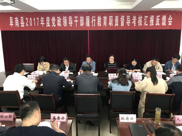 4月26日至27日,阜陽(yáng)市教育督導(dǎo)考核組對(duì)阜南縣2017年度黨政領(lǐng)導(dǎo)干部履行教育職責(zé)工作進(jìn)行督導(dǎo)考核??h領(lǐng)導(dǎo)李云川、孫國(guó)桃、劉麗麗、楊翠萍等陪同考核或參加匯報(bào)反饋會(huì)。