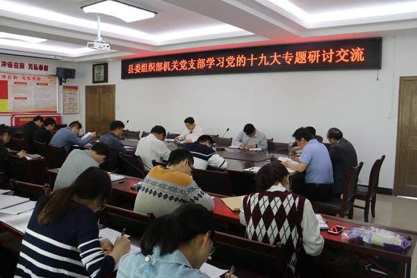 為深入學習宣傳貫徹黨的十九大精神,深刻領(lǐng)會習近平習近平新時代中國特色社會主義思想。4月28日,阜南縣委組織部機關(guān)黨支部召開學習黨的十九大精神專題研討交流會。會議由機關(guān)黨支部書記祝永華主持,機關(guān)支部全體黨員參加會議,縣委常委、組織部長、統(tǒng)戰(zhàn)部長孫國桃出席會議并講話。