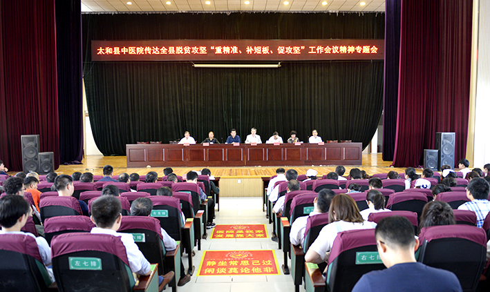 4月28日下午,太和縣中醫(yī)院在大會議室召開了傳達(dá)全縣脫貧攻堅“重精準(zhǔn)、補(bǔ)短板、促攻堅”工作會議精神專題會??h政協(xié)副主席、中醫(yī)院院長顏鵬飛主持會議。院黨委書記梁成名出席會議并講話。院黨政領(lǐng)導(dǎo)班子成員、全院黨員干部職工近800人參加了會議。