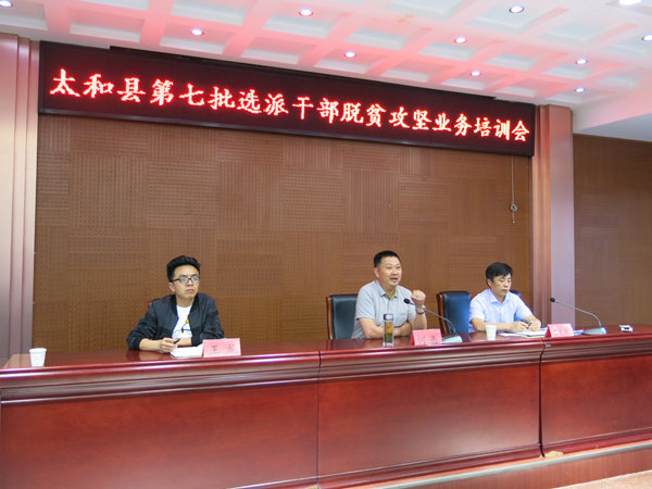 為貫徹落實(shí)全縣“重精準(zhǔn)、抓整改、補(bǔ)短板、促整改”專項(xiàng)行動推進(jìn)會精神,進(jìn)一步提高第七批選派幫扶干部脫貧攻堅(jiān)能力,近日,太和縣舉辦了第七批選派幫扶干部脫貧攻堅(jiān)業(yè)務(wù)知識培訓(xùn)班,全縣161名選派幫扶干部參加培訓(xùn),縣委組織部副部長何亮出席培訓(xùn)并講話。