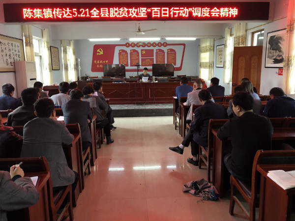 5月22日,陳集鎮(zhèn)傳達(dá)學(xué)習(xí)5.21全縣脫貧攻堅(jiān)“百日行動(dòng)”調(diào)度會(huì)會(huì)議精神,鎮(zhèn)全體干部、扶貧村官等參加會(huì)議,會(huì)議由鎮(zhèn)黨委書(shū)記陳雷主持。