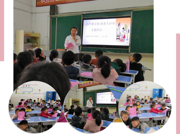 班會分別以“我接爺爺奶奶回家住”、“我給爺爺奶奶盛碗飯”
