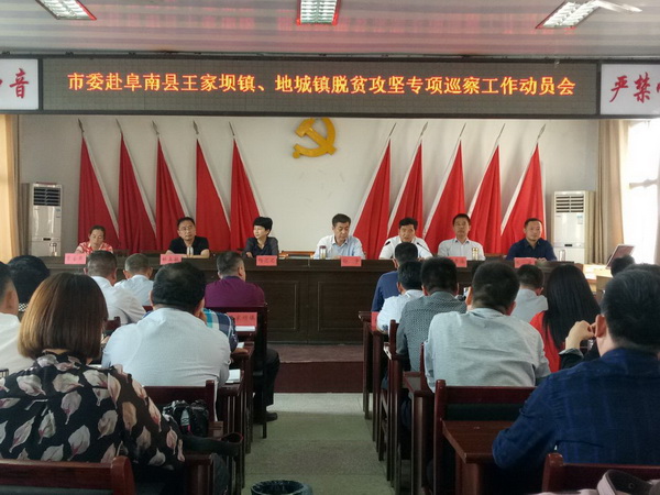 5月26日下午,市委赴阜南縣王家壩鎮(zhèn)、地城鎮(zhèn)脫貧攻堅(jiān)專項(xiàng)巡察工作動(dòng)員會(huì)在王家壩鎮(zhèn)三樓大會(huì)議室召開。會(huì)議由王家壩鎮(zhèn)黨委書記張濤主持,巡察組全體成員,王家壩、地城兩鎮(zhèn)機(jī)關(guān)全體人員、基層站所主要負(fù)責(zé)人、所轄村書記、主任,被巡察貧困村“兩委”班子成員參加會(huì)議。