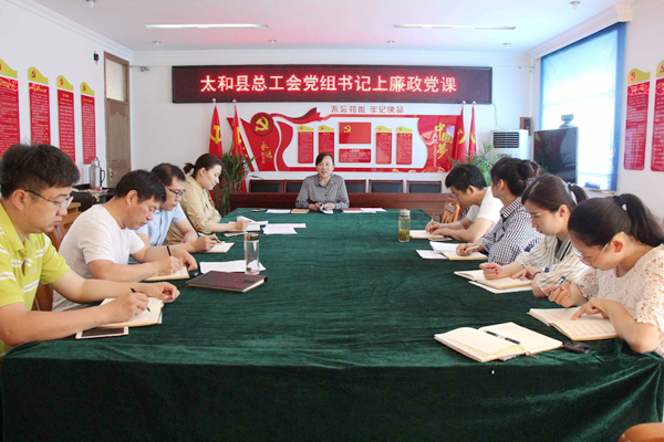 5月28日,太和縣總工會(huì)黨組書(shū)記、副主席劉靜,給縣總工會(huì)在家的機(jī)關(guān)黨員干部職工上了一堂生動(dòng)的廉政黨課。