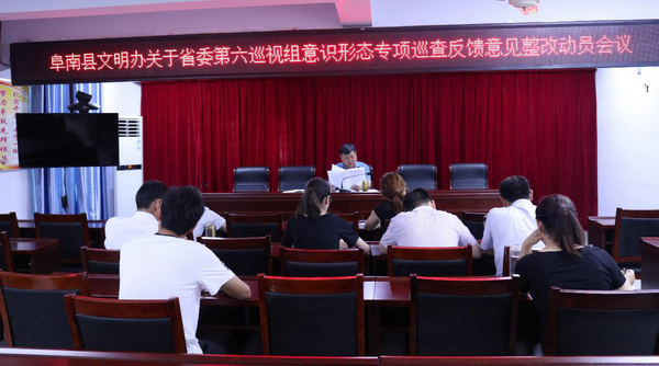 6月25日,阜南縣文明辦召開省委第六巡視組意識(shí)形態(tài)專項(xiàng)巡查反饋意見整改動(dòng)員會(huì)議。文明辦機(jī)關(guān)全體人員參加會(huì)議。縣文明辦主任虢治貴就意識(shí)形態(tài)責(zé)任制落實(shí)情況專項(xiàng)巡查反饋意見分解任務(wù)進(jìn)行動(dòng)員部署。