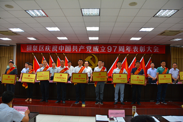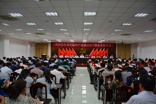 6月28日下午,潁泉區(qū)舉行慶祝建黨97周年表彰大會,隆重慶祝黨的光輝節(jié)日。區(qū)委書記劉洪潔出席會議并作專題黨課,區(qū)領(lǐng)導(dǎo)陳雷、熊曉珍、桂麗、劉萬和、蘭玉、王震、趙群、李繼雙、武亞東、沈立賢、宋炳坤,各鎮(zhèn)、街道園區(qū)黨工委書記、分管副書記、組織委員,區(qū)直各單位主要負(fù)責(zé)同志,村居(社區(qū))書記,受表彰的先進集體、先進個人及區(qū)第一期股級領(lǐng)導(dǎo)干部進修班學(xué)員300余人參加會議。會議由區(qū)委副書記、區(qū)委黨校校長熊曉珍主持。