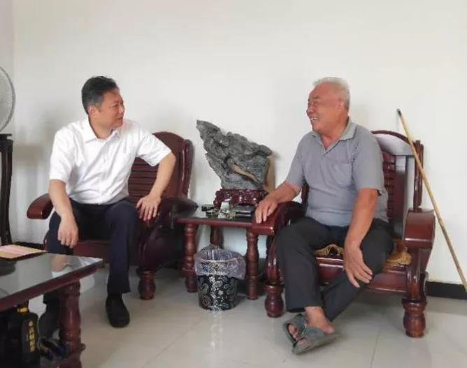 已經(jīng)75歲高齡的老黨員李守欽雖已雙目失明,但長期以來一直關(guān)注著黨的事業(yè)和村里的發(fā)展。王朝暉緊握著李守欽的手向他表達問候和敬意,祝福他建黨生日快樂、健康長壽、闔家幸福,鼓勵其一如既往關(guān)心支持村“兩委”工作,為實現(xiàn)如期脫貧和鄉(xiāng)村振興建言獻策。