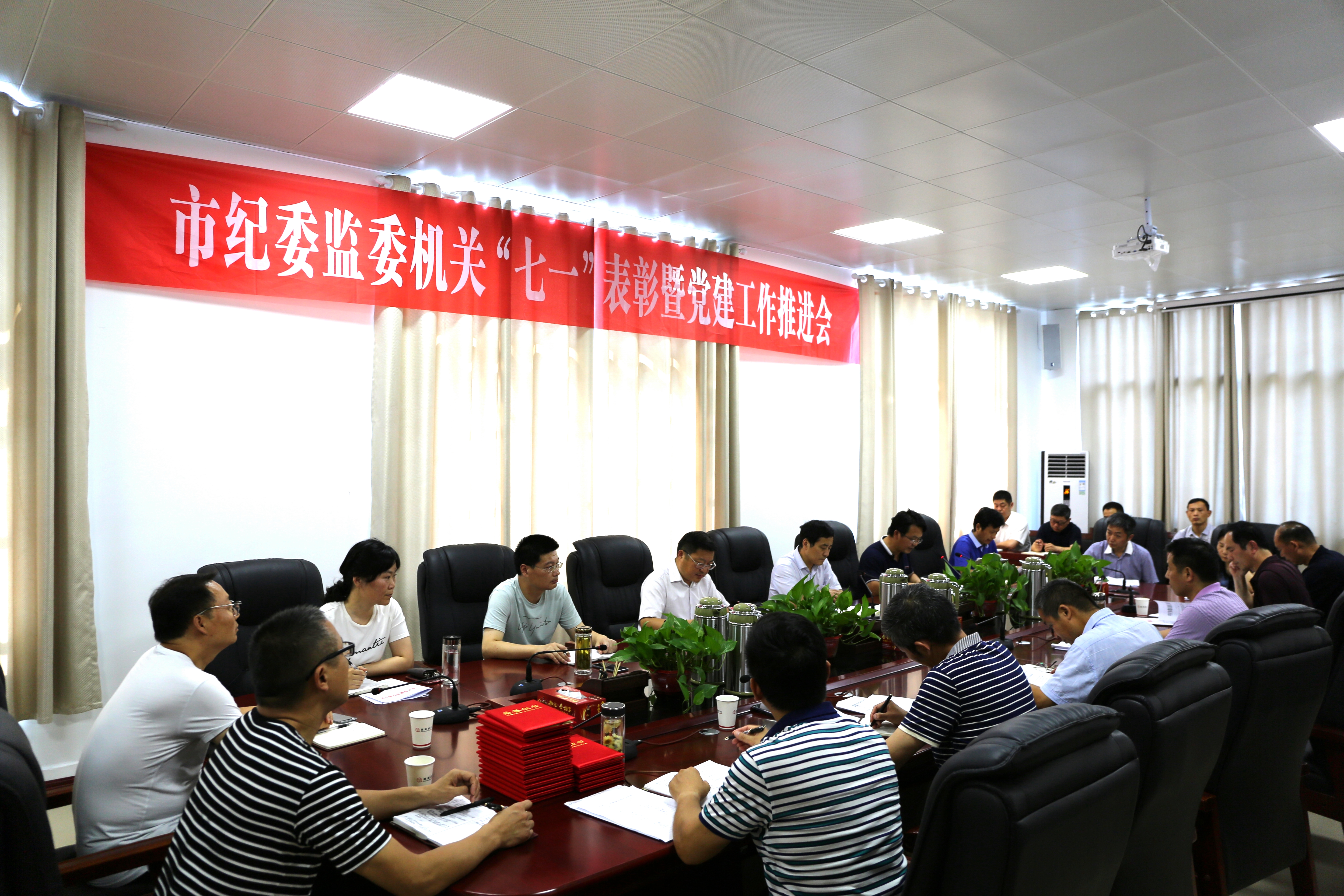2018年6月29日下午,市紀(jì)委監(jiān)委機(jī)關(guān)召開(kāi)“七一”表彰暨黨建工作推進(jìn)會(huì),機(jī)關(guān)黨委委員、各支部書(shū)記及聯(lián)絡(luò)員、群團(tuán)組織負(fù)責(zé)人和受表彰對(duì)象參加會(huì)議。
