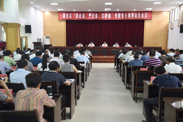 7月2日下午,潁東區(qū)召開“講忠誠(chéng)、嚴(yán)紀(jì)律、立政德”專題警示教育動(dòng)員會(huì)。市政協(xié)副主席、區(qū)委書記顧恒中出席會(huì)議并作動(dòng)員講話,區(qū)委常委、組織部長(zhǎng)、統(tǒng)戰(zhàn)部長(zhǎng)劉偉主持會(huì)議。區(qū)領(lǐng)導(dǎo)寧險(xiǎn)峰、芮磊、王飛虎參加會(huì)議。