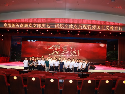會后,阜陽臨沂商城黨支部組織全體黨員觀看《厲害了 我的國》愛國主義教育片,并合影留念。