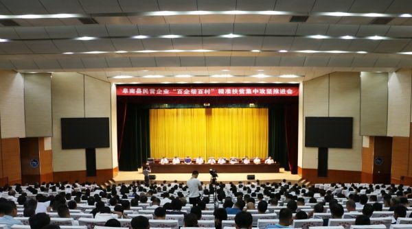 縣委常委、縣委組織部部長、縣委統(tǒng)戰(zhàn)部部長孫國桃宣讀了《關(guān)于表彰2017年度“百企幫百村”精準(zhǔn)扶貧先進(jìn)民營企業(yè)的通報(bào)》??h政協(xié)副主席、縣工商聯(lián)主席閆俊濤解讀了《阜南縣“百企幫百村”集中攻堅(jiān)行動(dòng)實(shí)施方案》。阜南特立電子、安徽寶蓮農(nóng)業(yè)科技兩家民營企業(yè)就“百企幫百村”扶貧工作作了經(jīng)驗(yàn)介紹。會(huì)議對扶貧工作做出突出貢獻(xiàn)的阜南縣餐飲(烹飪)協(xié)會(huì)等十家民營企業(yè)進(jìn)行了表彰。