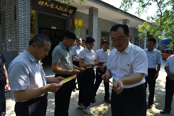 劉洪潔一行首先來到行流鎮(zhèn)四九起義舊址,瞻仰了“四九”起義紀念碑,向紀念碑敬獻花籃,重溫了入黨誓詞。并到紀念館各個展室,結(jié)合一件件實物、一幅幅圖片等,詳細了解那段悲壯的歷史。隨后,劉洪潔為七月份入黨的4名黨員過政治生日。