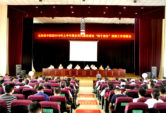 近日,太和縣中醫(yī)院召開2018年上半年落實黨風(fēng)廉政建設(shè)“兩個責(zé)任”迎檢工作部署會。縣政協(xié)副主席、中醫(yī)院院長顏鵬飛,醫(yī)院黨委書記梁成名出席會議。黨委副書記姚先杰主持會議。醫(yī)院黨政領(lǐng)導(dǎo)班子成員及全院黨員干部職工700余人參加了會議。