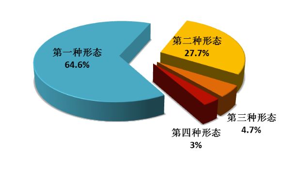 其中,第一種形態(tài)44.2萬(wàn)人次,占“四種形態(tài)”處理總?cè)舜蔚?4.6%;第二種形態(tài)18.9萬(wàn)人次,占27.7%;第三種形態(tài)3.2萬(wàn)人次,占4.7%;第四種形態(tài)2.1萬(wàn)人次,占3%。