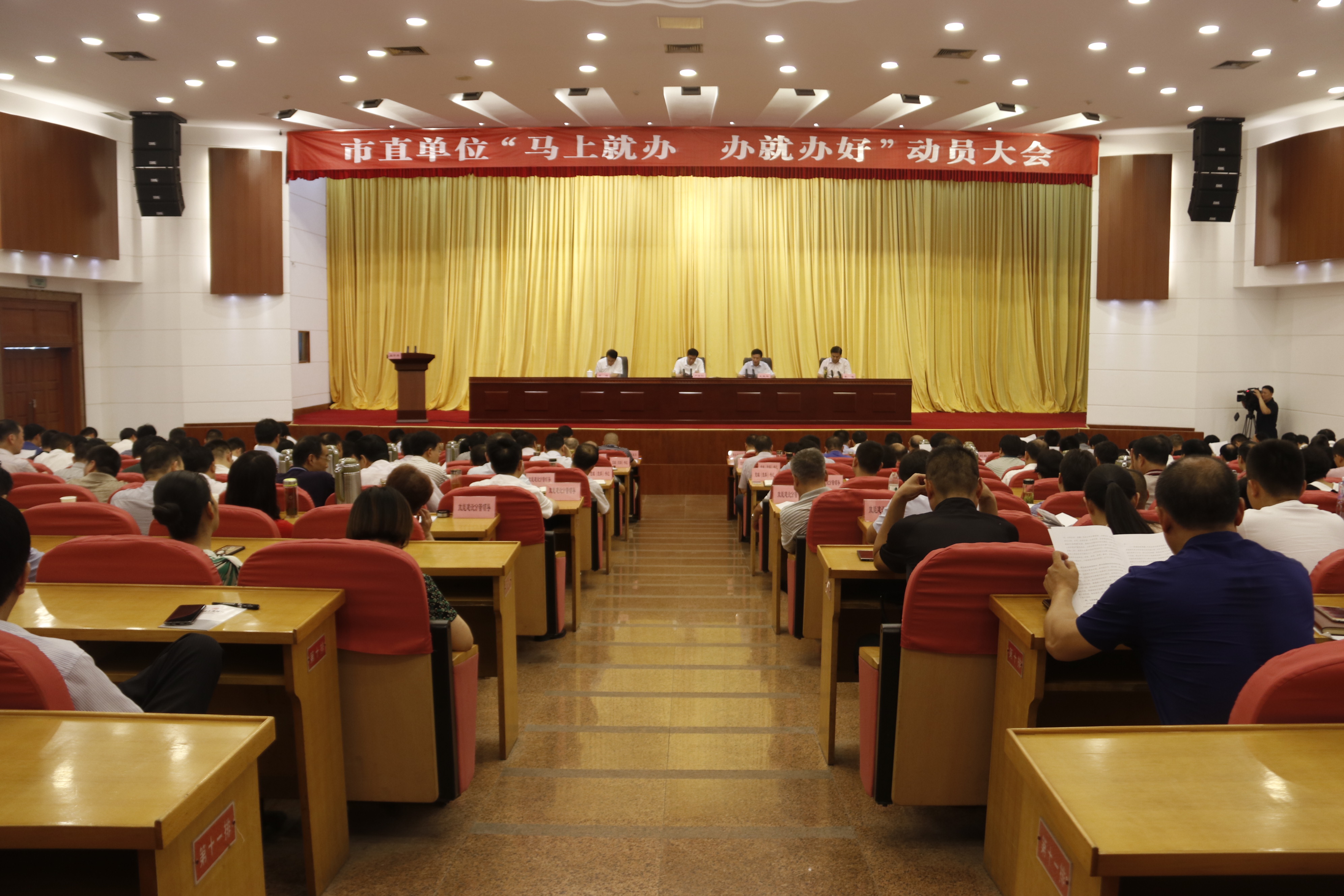 7月18日,市直單位“馬上就辦、辦就辦好”動員會在市政府一樓會議室召開。市委副書記、市直機關(guān)作風(fēng)效能建設(shè)領(lǐng)導(dǎo)小組組長盧仕仁出席會議并作重要講話。市政協(xié)副主席、市委秘書長王振軍,市政府秘書長黃琦出席會議。市直機關(guān)作風(fēng)效能建設(shè)領(lǐng)導(dǎo)小組成員,市直各單位主要負責(zé)同志、分管作風(fēng)效能建設(shè)的負責(zé)同志參加會議。會議由市直工委書記李濤主持。