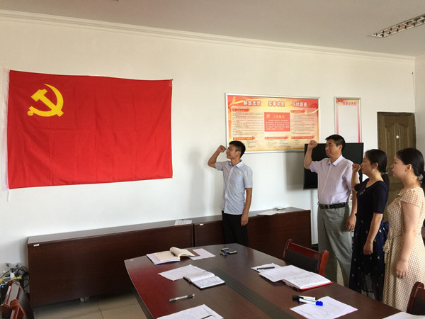 重溫入黨誓詞,聲聲堅(jiān)定對黨旗莊嚴(yán)宣誓。“我志愿加入中國共產(chǎn)黨,擁護(hù)黨的綱領(lǐng),遵守黨的章程……”在鮮艷火紅的黨旗下,各支部黨員高舉右拳,面對黨旗莊嚴(yán)宣誓。這一字一句,鏗鏘有力的誓言,讓大家追憶起入黨時(shí)的初心和自豪之情,堅(jiān)定了大家不忘初心、砥礪奮進(jìn)的理想信念。