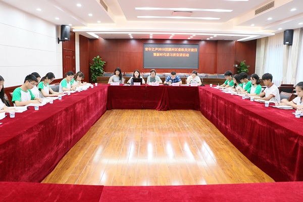7月27日下午,共青團(tuán)潁州區(qū)委舉辦機(jī)關(guān)開放日暨新時(shí)代講習(xí)所宣講活動(dòng)。團(tuán)區(qū)委全體人員、安師大“孝行團(tuán)隊(duì)”、阜信工陽光愛心社隊(duì)員以及阜信工“文化溯源 科技傳播”支教調(diào)研團(tuán)隊(duì)部分隊(duì)員參加此次活動(dòng)。