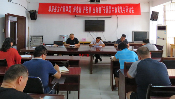 7月27日下午,阜南縣文廣新體局召開“講嚴(yán)立”專題警示教育集中研討會。