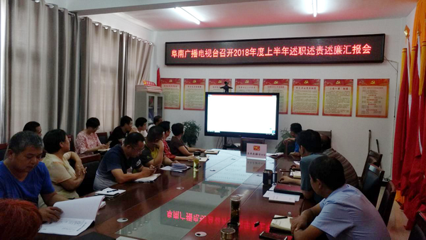 7月30日,阜南廣播電視臺(tái)黨委書記、臺(tái)長(zhǎng)劉超主持召開2018年度上半年述職述責(zé)述廉匯報(bào)會(huì),黨委班子成員、中層及以上領(lǐng)導(dǎo)干部、各支部書記參加報(bào)告會(huì)。