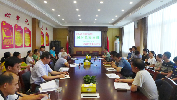 為深入貫徹落實(shí)習(xí)近平習(xí)近平新時(shí)代中國(guó)特色社會(huì)主義思想,強(qiáng)化干部職工國(guó)防觀念,8月10日下午,市發(fā)展改革委利用黨員活動(dòng)日、第23期周末夜校、“潁淮大講堂·經(jīng)濟(jì)分講堂”舉辦國(guó)防教育知識(shí)講座,邀請(qǐng)阜陽軍分區(qū)動(dòng)員處處長(zhǎng)程龍授課。市發(fā)展改革委黨組成員、副主任王虎主持講座,委機(jī)關(guān)全體人員及委屬機(jī)構(gòu)負(fù)責(zé)人參加。