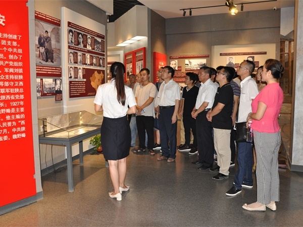 在魏野疇烈士紀念館,全體黨員干部在魏野疇同志的雕像前方肅立,向先烈敬獻花籃,鞠躬默哀,寄托了對革命先烈的懷念與哀思。面向莊嚴的黨旗,大家舉起右拳,神情莊重,聲音高亢,重溫了入黨誓詞。隨后,黨員干部們參觀了魏野疇紀念館的發(fā)軔五四、播火三秦、建黨西安、兵運皖北、暴動阜陽、蒙難臨泉、彪炳史冊七個單元,詳細了解了魏野疇自五四運動到英勇就義各個時期的英雄事跡和他光輝而短暫的一生。大家仿佛重新回到了那段激情燃燒的烽火歲月,紛紛動容,并向魏野疇烈士墓三鞠躬,表達了對革命前輩的哀思和無限敬仰。