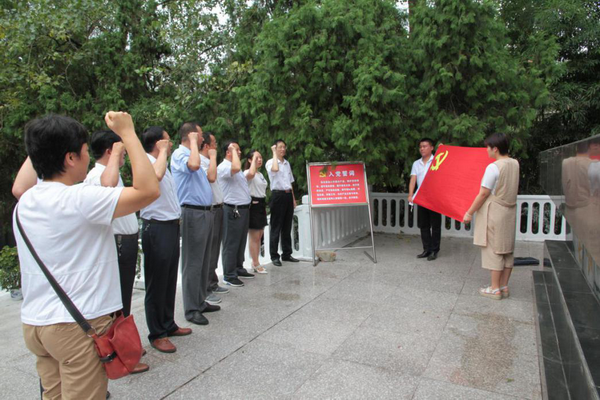 全體黨員懷著崇敬的心情,依次參觀了紀(jì)念館的三個(gè)展廳,一幅幅滄桑的歷史圖片,一段段珍貴的文獻(xiàn)資料,真實(shí)地展示了“皖北四九起義”的光輝歷史,生動(dòng)地再現(xiàn)了先烈們?yōu)楦锩聵I(yè)拋頭顱、灑熱血的英勇事跡,深深震撼著每一個(gè)人。在莊嚴(yán)肅穆的氣氛中,部全體黨員干部站在四九起義紀(jì)念碑前,面對(duì)鮮紅的黨旗重溫了入黨誓詞。