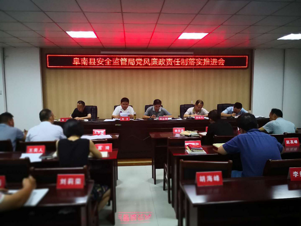 近日,阜南縣安監(jiān)局召開(kāi)2018年黨風(fēng)廉政責(zé)任制落實(shí)推進(jìn)會(huì),會(huì)議由黨組書(shū)記、局長(zhǎng)張士雷主持,全局干部職工參加會(huì)議。