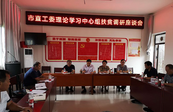 活動第二部分,市直工委理論學習中心組與范灣村兩委班子聯(lián)合召開扶貧專題調(diào)研座談會。