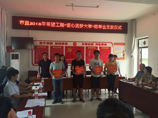 本次活動分為兩個部分,首先,在市直愛心單位2018希望工程“愛心圓夢大學”助學金發(fā)放儀式上,市人民醫(yī)院和市供水總公司各出資6000元,資助范灣村4名困難應屆大學生。