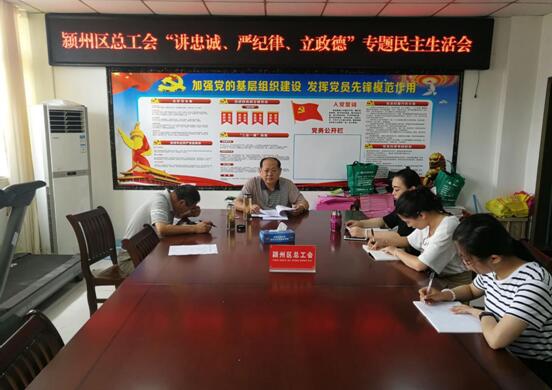 8月22日,潁州區(qū)總工會召開“講嚴立”警示教育專題民主生活會。區(qū)總工會黨組書記、主席張彪主持會議。