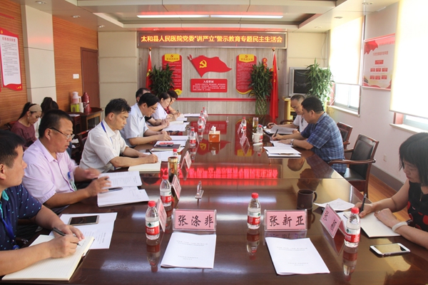 太和縣人民醫(yī)院黨委書(shū)記、院長(zhǎng)祝振華通報(bào)2017年度黨員領(lǐng)導(dǎo)干部民主生活會(huì)整改和“講嚴(yán)立”警示教育專題民主生活會(huì)會(huì)前準(zhǔn)備情況,代表黨委班子作對(duì)照檢查。每位班子成員圍繞主題分別作對(duì)照檢查,并開(kāi)展互相批評(píng)。