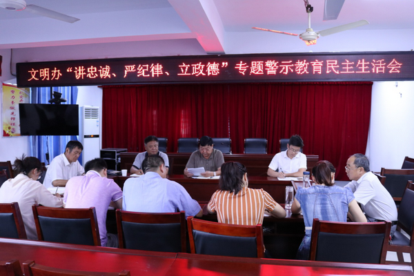 8月22日下午,阜南縣文明辦召開“講嚴(yán)立”專題警示教育民主生活會??h紀(jì)委監(jiān)委駐縣委宣傳部紀(jì)檢組、縣委組織部應(yīng)邀到會指導(dǎo)。會議由文明辦黨支部書記、主任虢治貴主持。