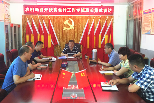為推進(jìn)脫貧攻堅(jiān)工作,太和縣農(nóng)機(jī)局召開(kāi)緊急會(huì)議,傳達(dá)9月6日縣委關(guān)于扶貧工作人員駐村工作會(huì)議精神,迅速成立以主要領(lǐng)導(dǎo)負(fù)責(zé)的7個(gè)專(zhuān)班、37名同志為隊(duì)員的脫貧攻堅(jiān)隊(duì)伍。9月7日,局長(zhǎng)王磊主持會(huì)議,分別對(duì)7個(gè)專(zhuān)班班長(zhǎng)和扶貧工作期間留守人員進(jìn)行集體談話。