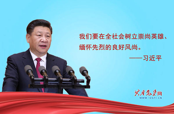 我們要銘記一切為中華民族和中國人民作出貢獻(xiàn)的英雄們,崇尚英雄,捍衛(wèi)英雄,學(xué)習(xí)英雄,關(guān)愛英雄,勠力同心為實(shí)現(xiàn)“兩個(gè)一百年”奮斗目標(biāo)、實(shí)現(xiàn)中華民族偉大復(fù)興興的中國夢(mèng)而努力奮斗!