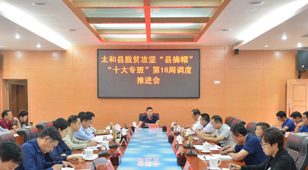 近日,太和縣脫貧攻堅“縣摘帽”“十大專班”第16周調(diào)度推進會召開,縣委副書記、縣長劉牧愚主持會議并講話,縣領(lǐng)導楊代軍、潘江徽、劉健、鮑黎、丁志凱、海治國、于群、汪斌等出席會議。